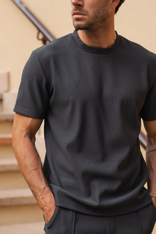 Pleated Slim Fit T-Shirt - Charcoal