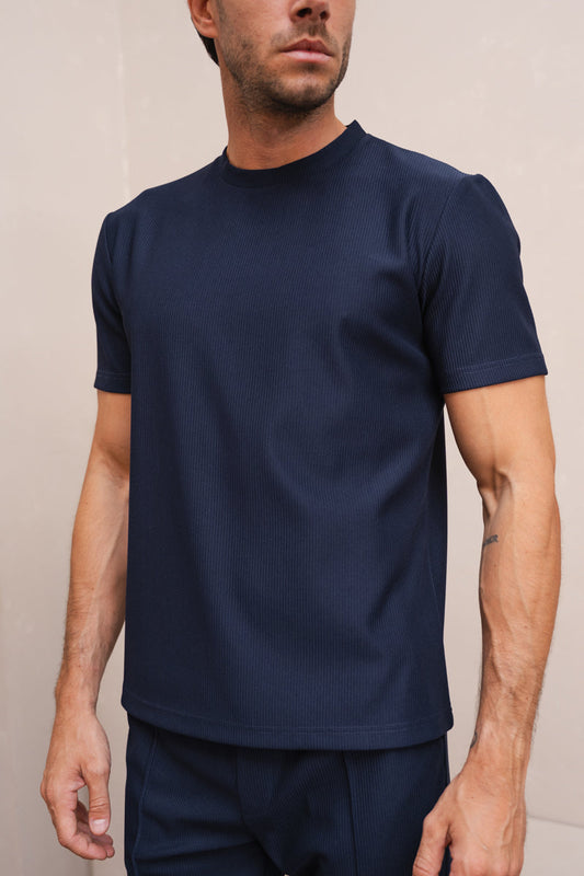 Pleated Slim Fit T-Shirt - Navy